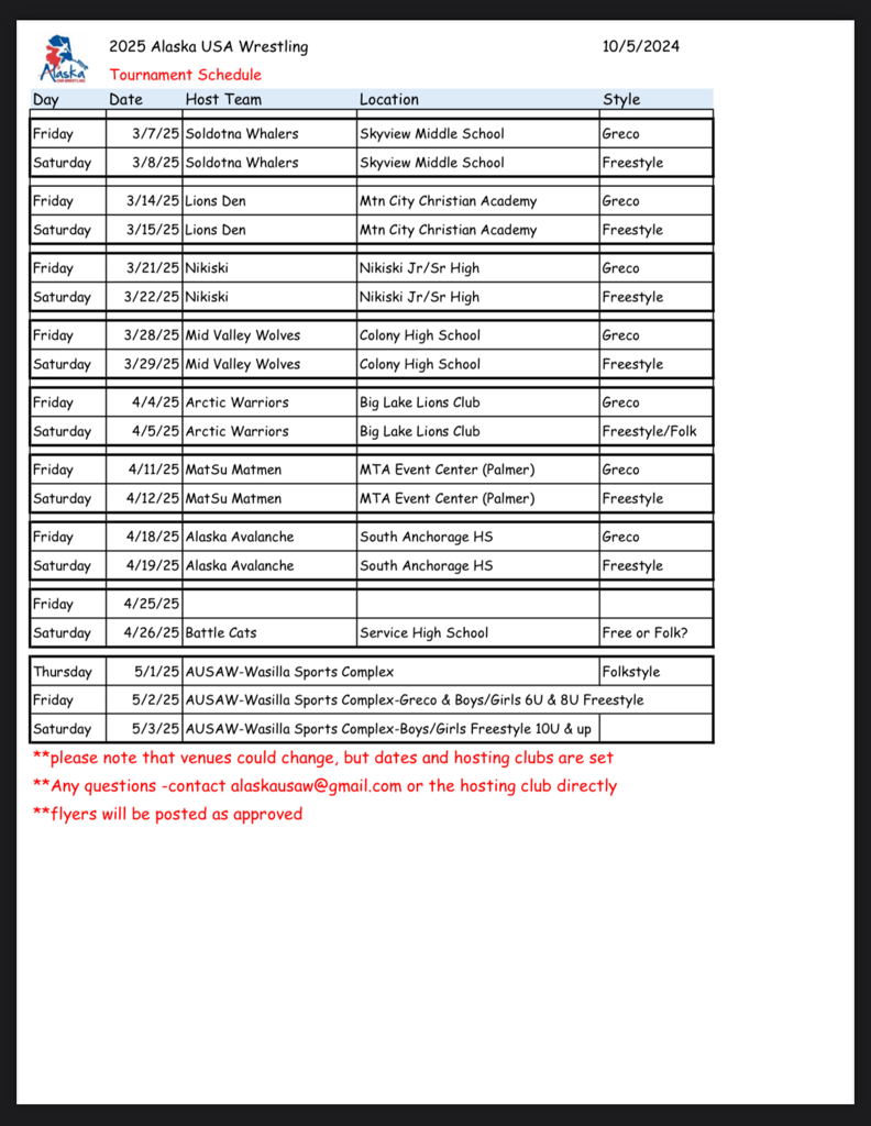 Held at Wasilla Sports Complex